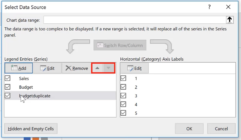 - Rearrange: Use the arrows beside the “Remove” button to move the series up or down.