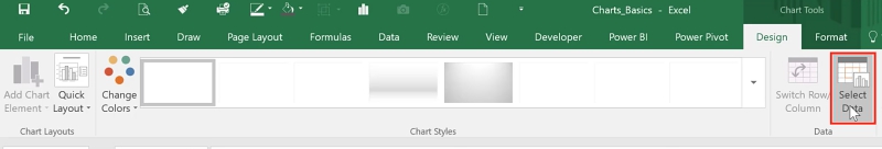 - Select Data: To add data to your chart, select the empty chart and go to the “Chart Design” tab. Click on “Select Data”.