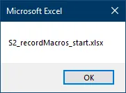 FileName = VBA.FileSystem.Dir(“C:\Users\LG\Desktop\VBA\S2_recordMacros_start.xlsx”)- If the file does not exist, the DIR function will return an empty string. We will test for the empty string response with an IF statement. If the file does not exist, we will display a message stating such. If the file does exist, this first version will simply show the filename in a message box.