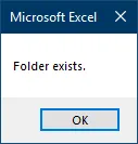End Sub- Run the code by pressing F5. Because the folder does not exist, we are presented with the following message prompt.