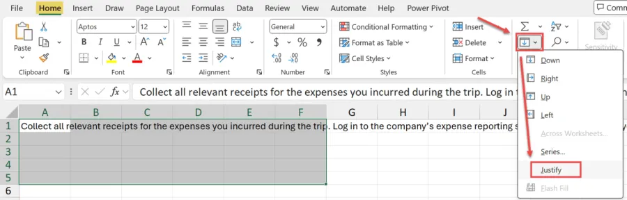 Excel’s Fill Justify feature is handy for organizing long text. But there’s an important limitation you need to know: It only works with text up to 255 characters.