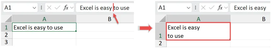 For example, your text says “Excel is easy to use,” and you want “to use” on a new line: