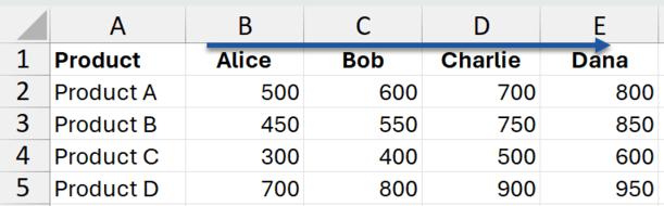For example, you might have sales data for different employees, and you want their names listed alphabetically across the top of the table.