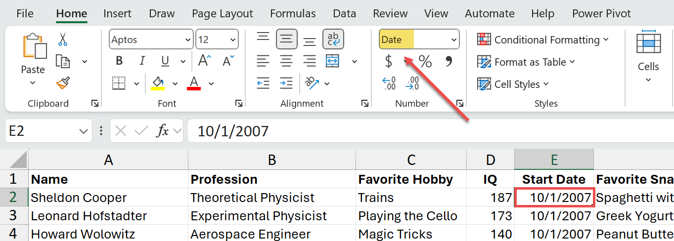 - Go to the Home tab and ensure the format is set to Date in the Number Format dropdown.