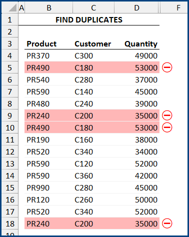 ❗ This technique does not work to find duplicates in a Pivot Table. If you need to find duplicates in a pivot table, you can try copying the data from the pivot table into a new worksheet. Then, use the same method described here to highlight duplicates in the new sheet.