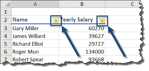 To show the Filter/Sort dropdown controls on your table’s header row, click inside your data set and press