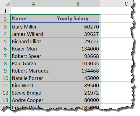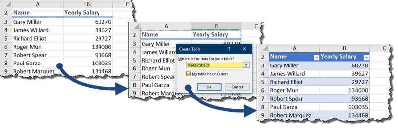 To turn your basic table into an official Excel Data Table, click anywhere in the data and then press