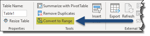 💡 To get rid of all Data Table features and go back to a basic table, click Convert to Range in the Tools section.