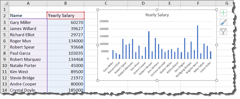 To add a default chart to the current sheet, click inside the data range and press