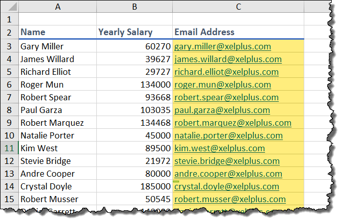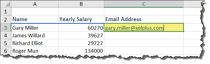 If you want to make email addresses for all sales representatives on a list, click on an empty cell next to the first sales rep’s name. Type their email address and hit ENTER.