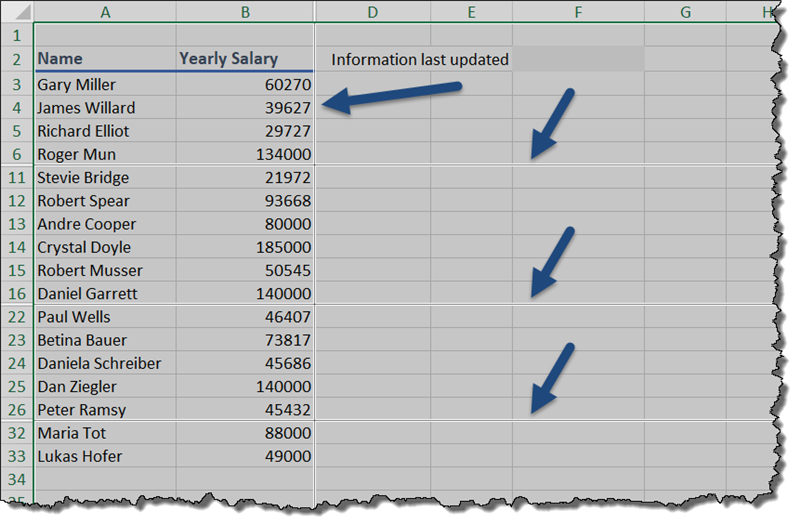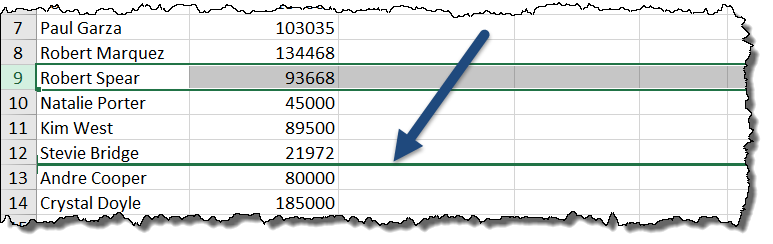 If you want to move an entire row of data and put it between two other rows, select the row you’re moving and press