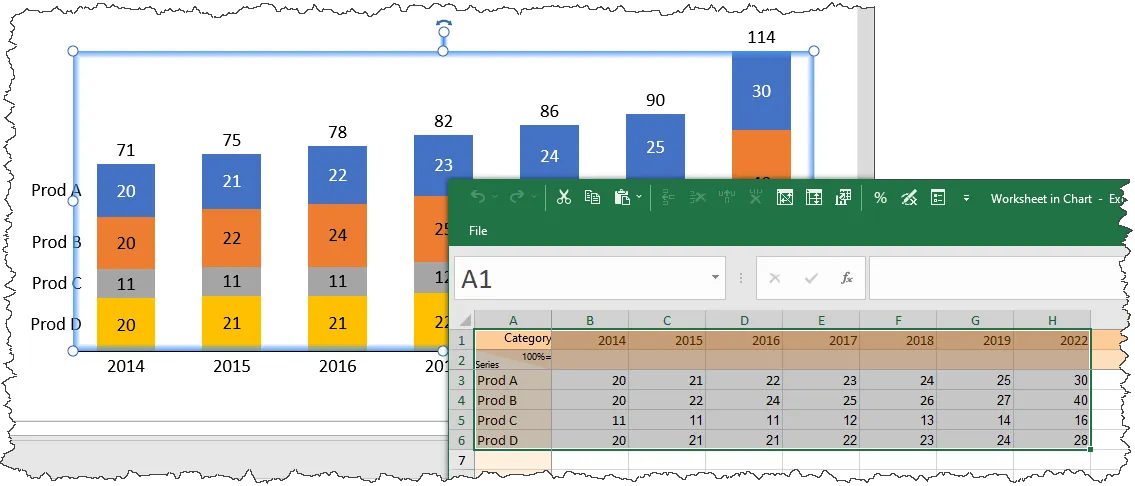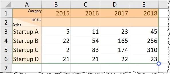 think-cell uses a customized Excel sheet to input the data into the chart. The sheet is a lite version of a traditional Excel sheet, lacking many non-chart-related features, but it will serve us well for this mission.