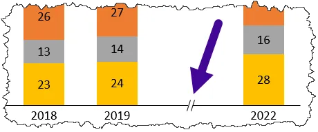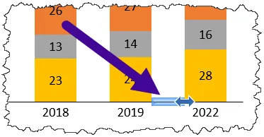 We don’t want the connector lines between the years 2019 and 2022, so we click on one of those connectors and press the Delete key to remove them.