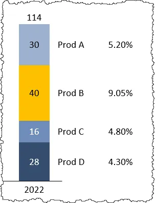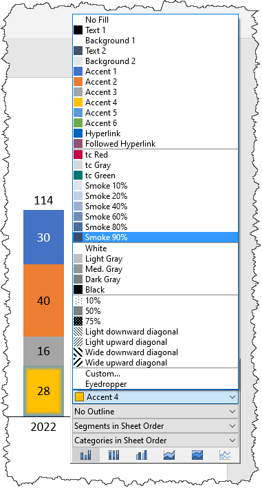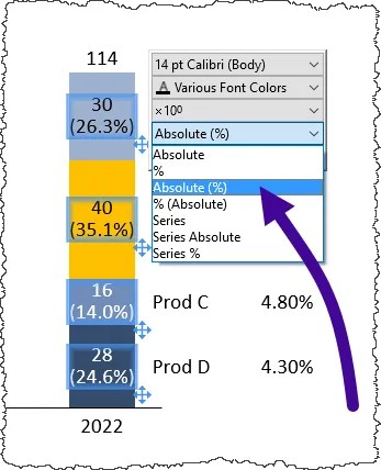 We will also customize the series values in the color segments to display the Absolute % of each series in the year 2022.
