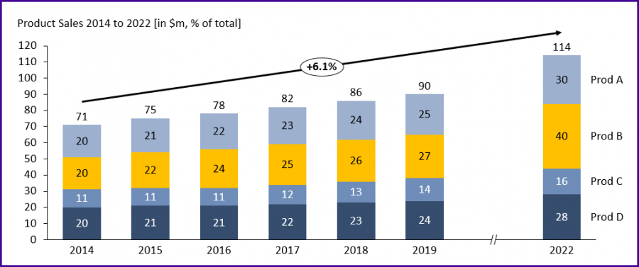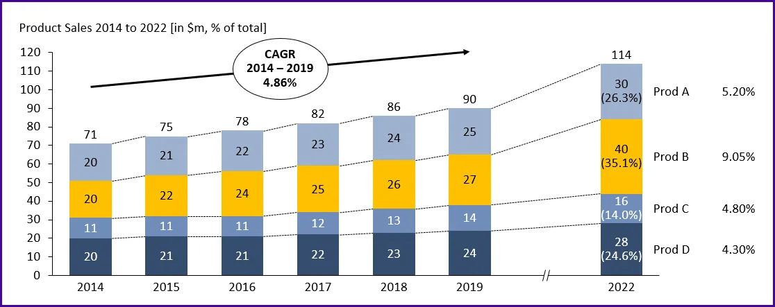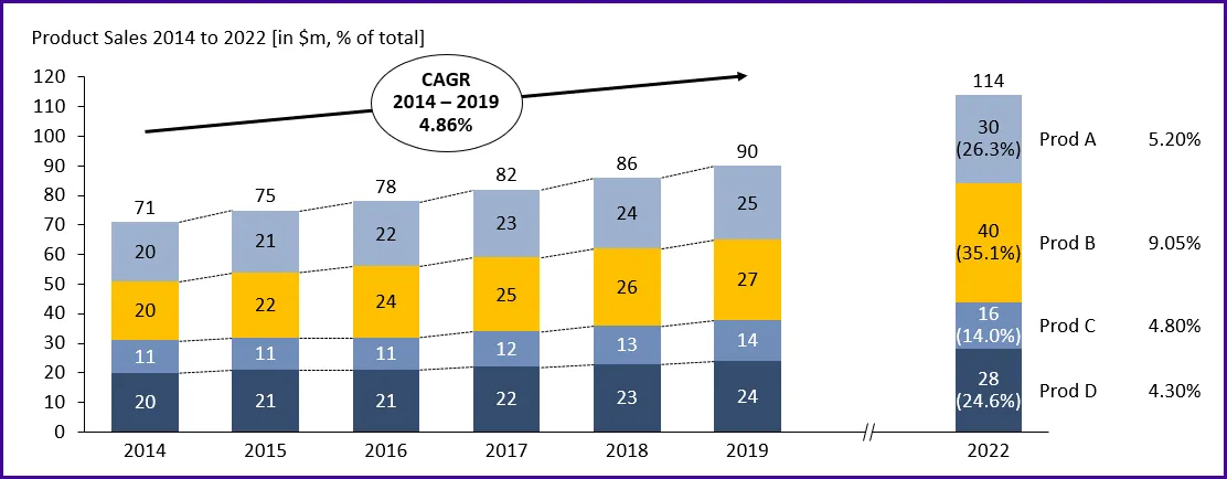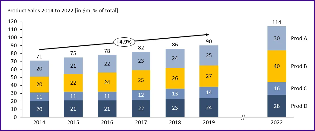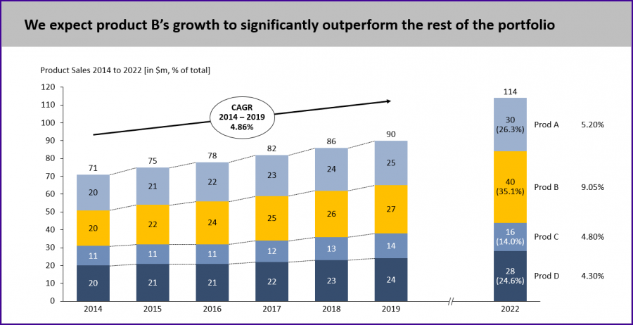 We can limit the CAGR line’s scope by dragging the line’s circular handle from the 2022 column to the 2019 column.