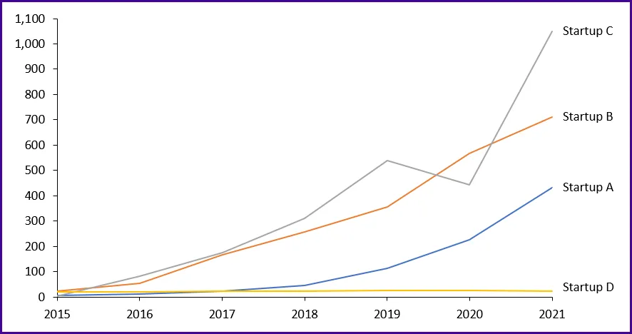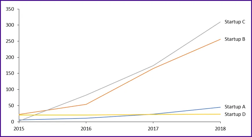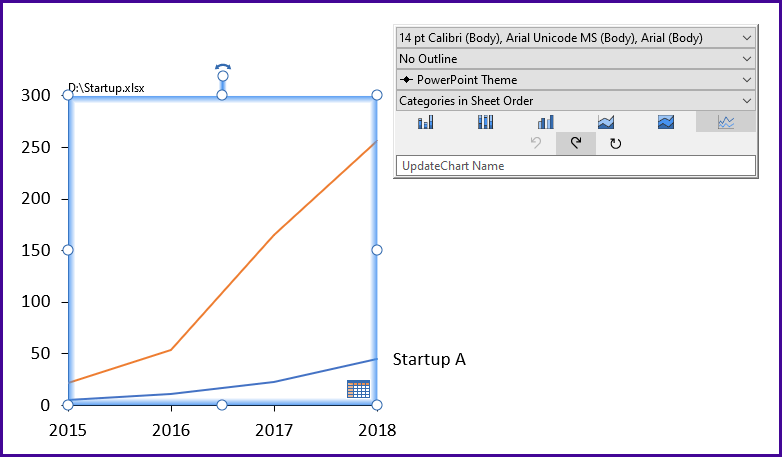 Let’s add a couple more startups with some data and see how the PowerPoint line chart reacts.