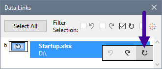 We can see the link information above the line chart (our file is located on the D-drive and named “Startup.xlsx”.)