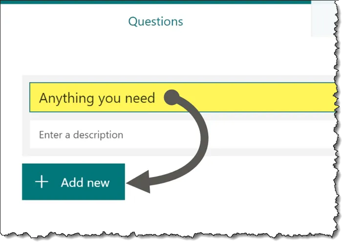 We’ll keep this simple and call the form “Anything You Need”, then click Add New to create our first question.