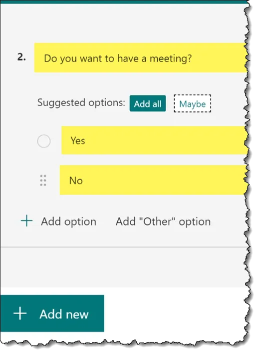 Enter “Do you want to have a meeting?” in the question field and set the option responses to “Yes” and “No”.