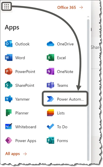 As we did earlier, start the Power Automate app by selecting the App Launcher and clicking the Power Automate app.