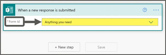 To define the steps taken if the trigger is activated, begin by selecting the form we created earlier named “Anything You Need” from the Form ID dropdown list.