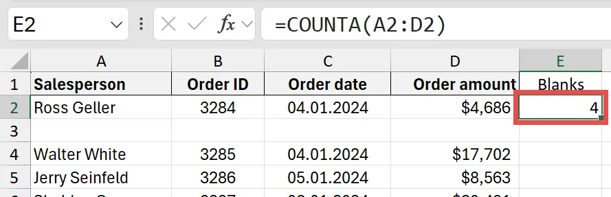 - Copy the Formula Down: Click the cell with your formula (e.g., E2). Press