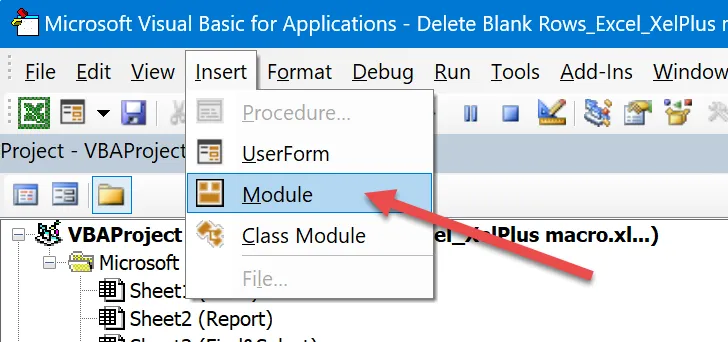Alt + F11. - Insert a New Module: In the VBA editor, go to the menu and select Insert > Module. This will create a new module where you can write your code.
