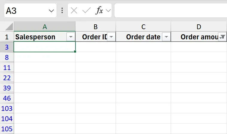 ❗Make sure that the blanks are always in the same column and ideally the entire row is blank. You must reset the filter and repeat the steps if the dataset changes.