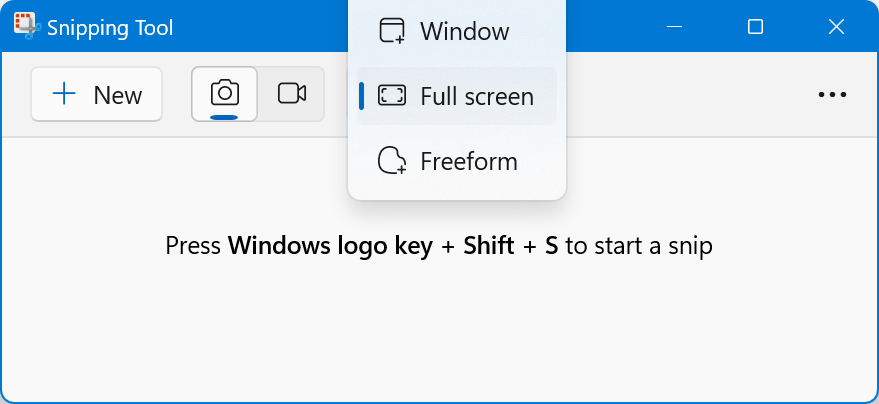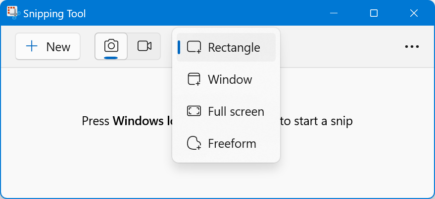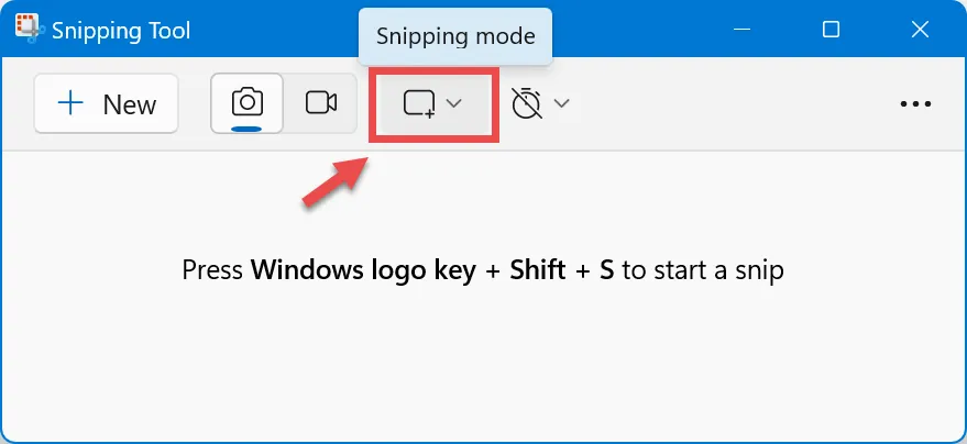 Open the Snipping Tool, select ‘Snipping Mode’ and choose the type of snip you want from the dropdown.