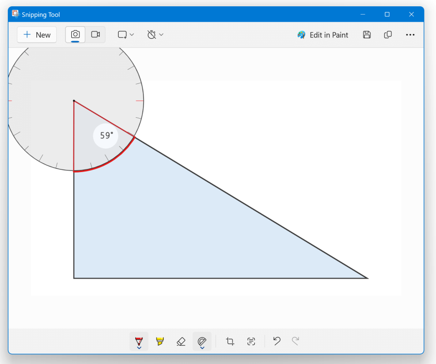 The Snipping Tool includes a handy protractor tool to help you measure angles directly on your screen. Here’s how to use it: