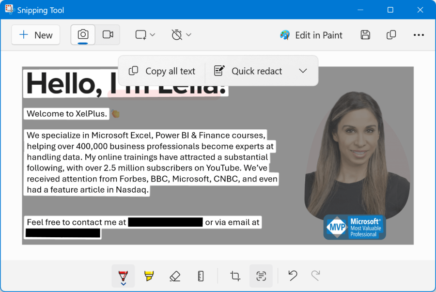 The Snipping Tool does more than just capture images. It also features Text Actions with built-in Optical Character Recognition (OCR). This allows you to extract and edit text from screenshots. It’s handy for saving information or hiding sensitive data.