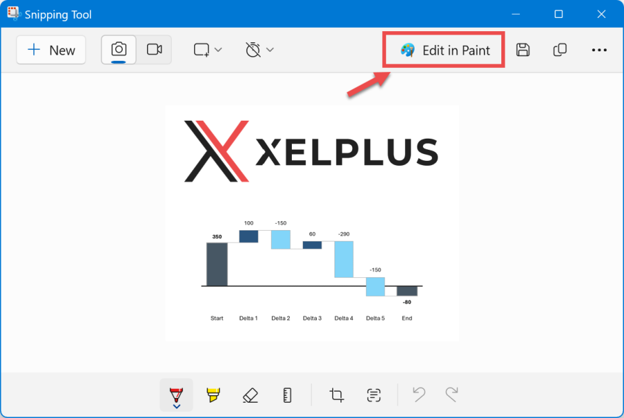 - This will automatically open your captured snip in Microsoft Paint for more advanced editing.