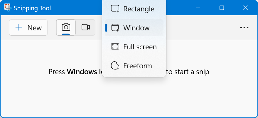 - Open the Snipping Tool and Select Window Snip Mode. This setting prepares the tool to take a screenshot of a whole window rather than just a portion of the screen.