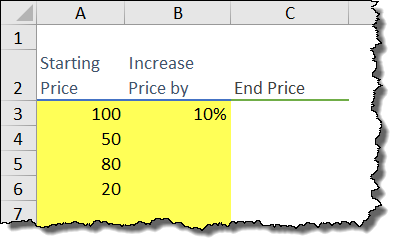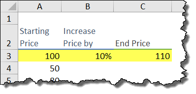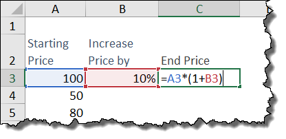 - Check the Result: If the starting price in cell A3 was $100 and you wanted to increase it by 10%, the formula in C3 will correctly calculate the new price as $110.