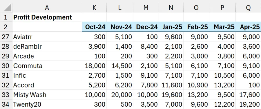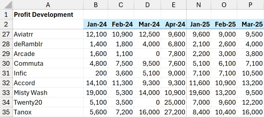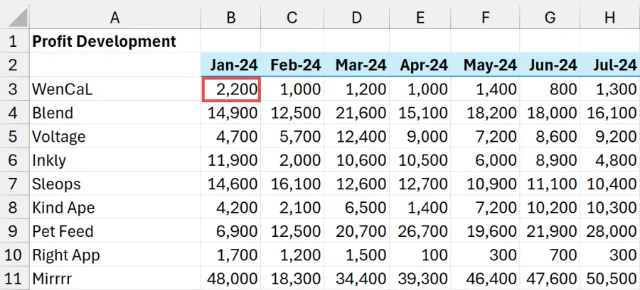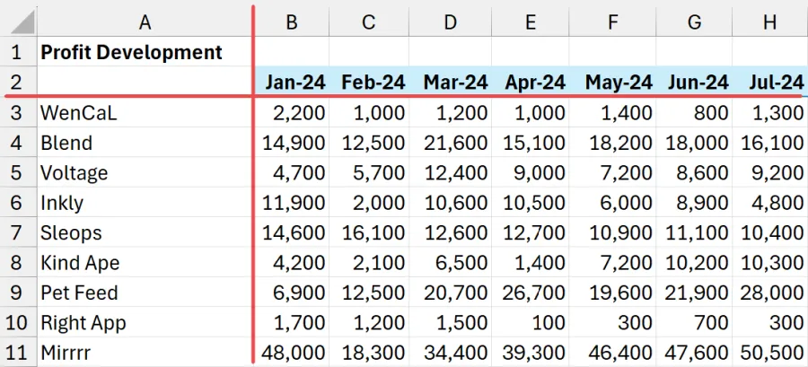 Sometimes, you’ll want to freeze both rows and columns to keep both headers and row labels in view.