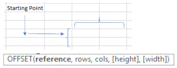 =OFFSET(reference, rows, cols, [height], [width])- reference: The starting point (a cell or range of cells).