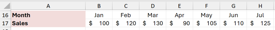 Imagine you have sales data for each month from January to July in cells B17 to H17.