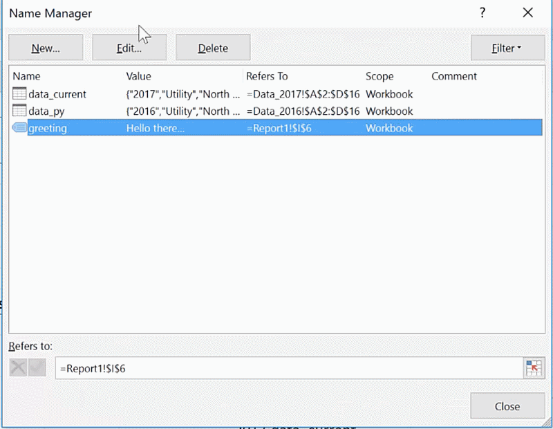 - Click on ‘Name Manager’, then on ‘New’.